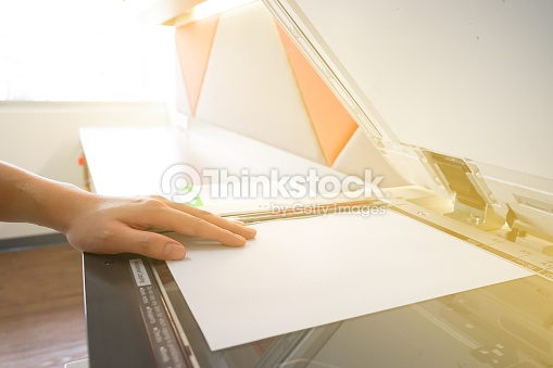 Man copying paper from Photocopier sunlight from window